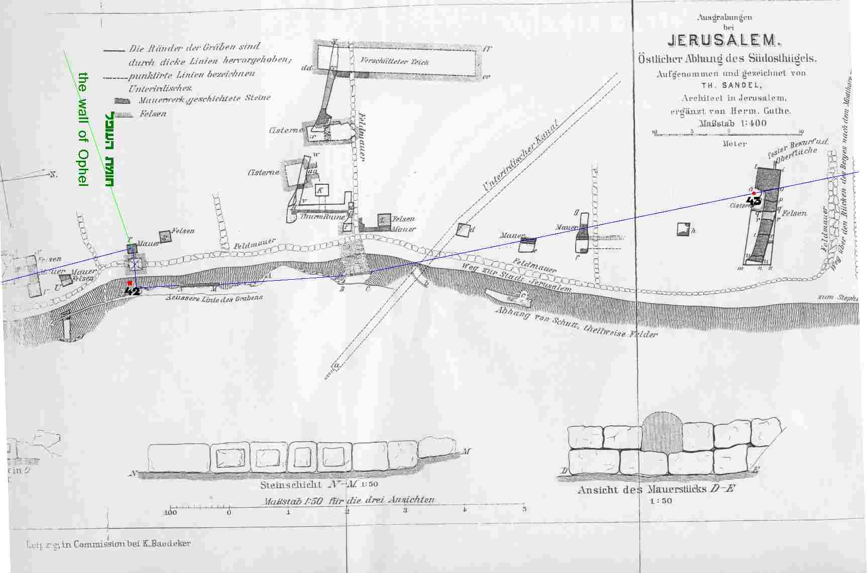 צפונה עד חיבורה עם הר הבית נתן לשער בעזרת חפירות של Guthe (2) ו-Warren (3). זאת החומה אשר החריב נבוכדנצר וזאת בהכרח החומה אשר שקם נחמיה.