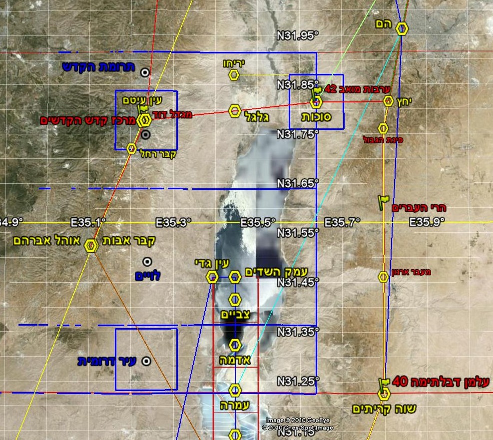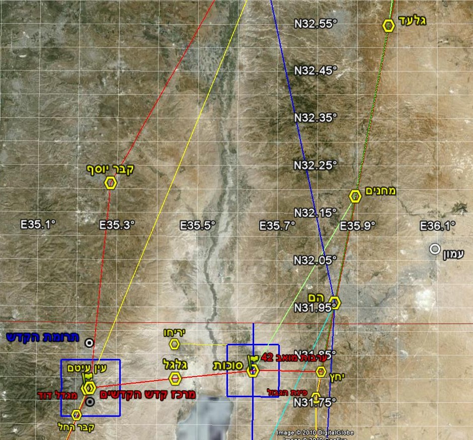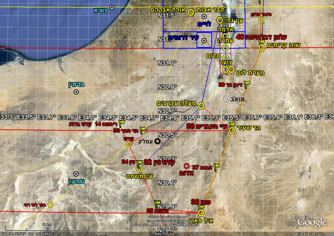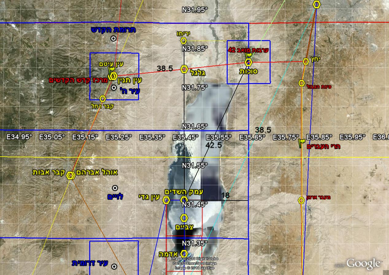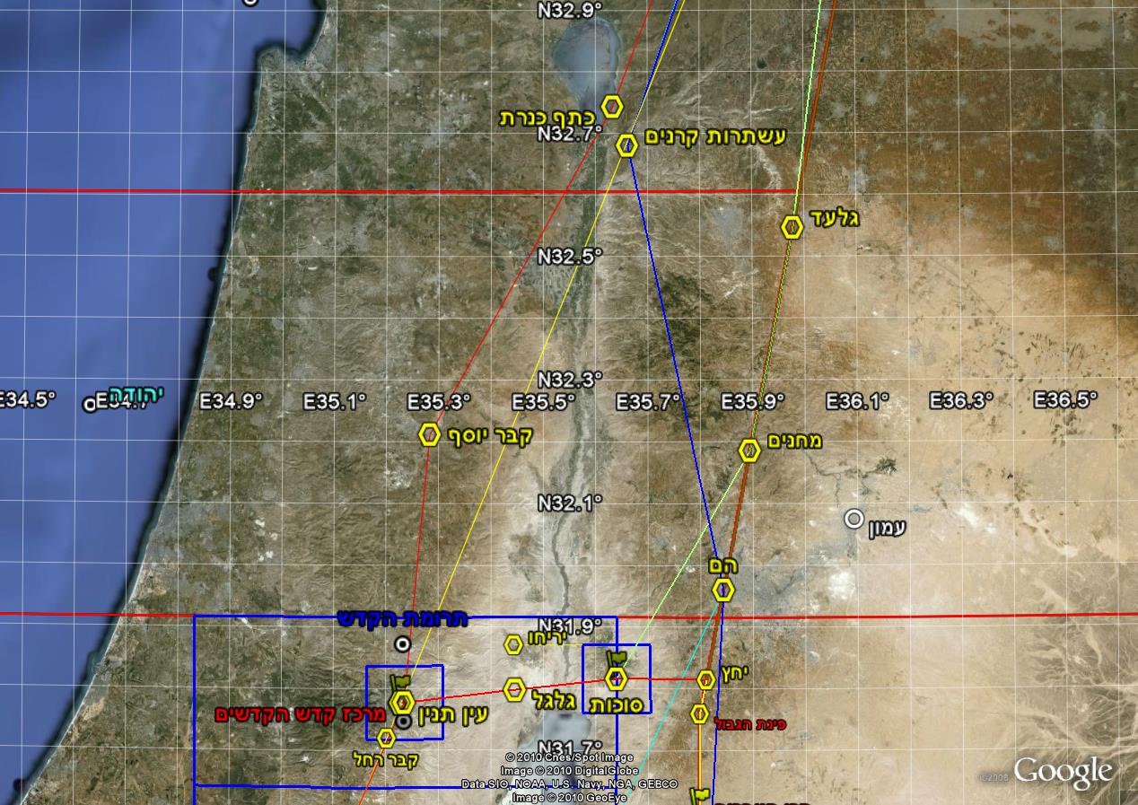35.7977492/31.7600731 בקו אורך של נקודה 10) ובקו רוחב גבול דרומי של מחנה ישראל בערבות