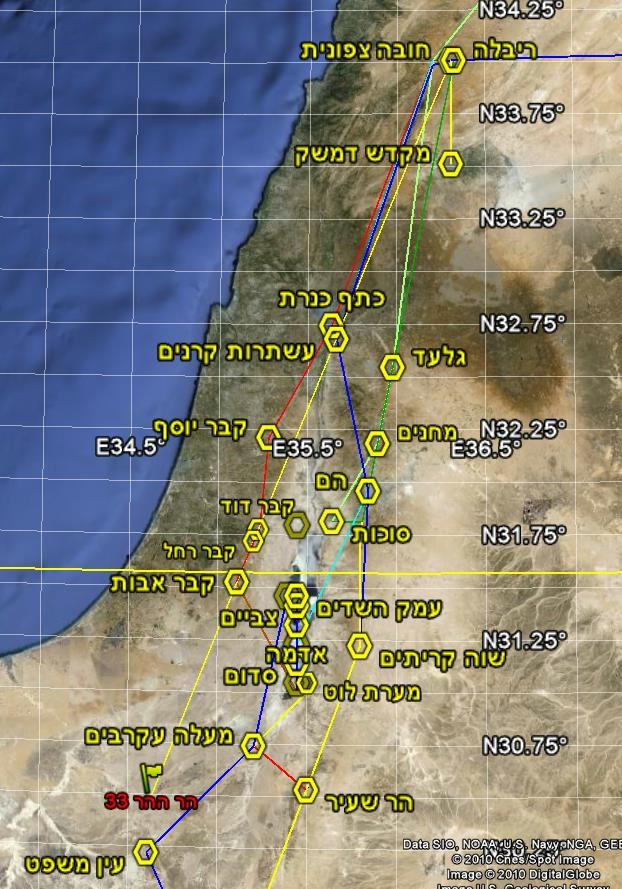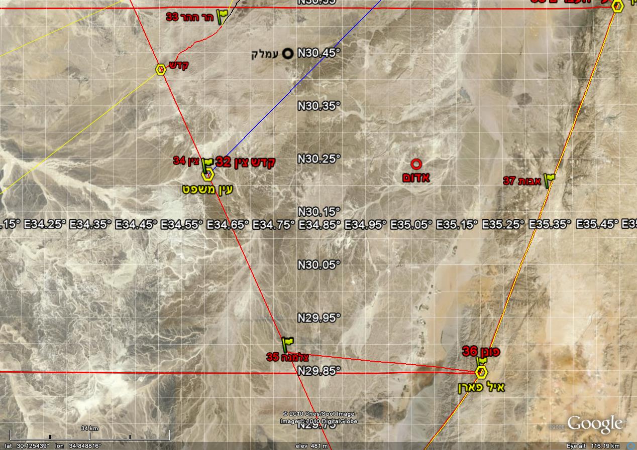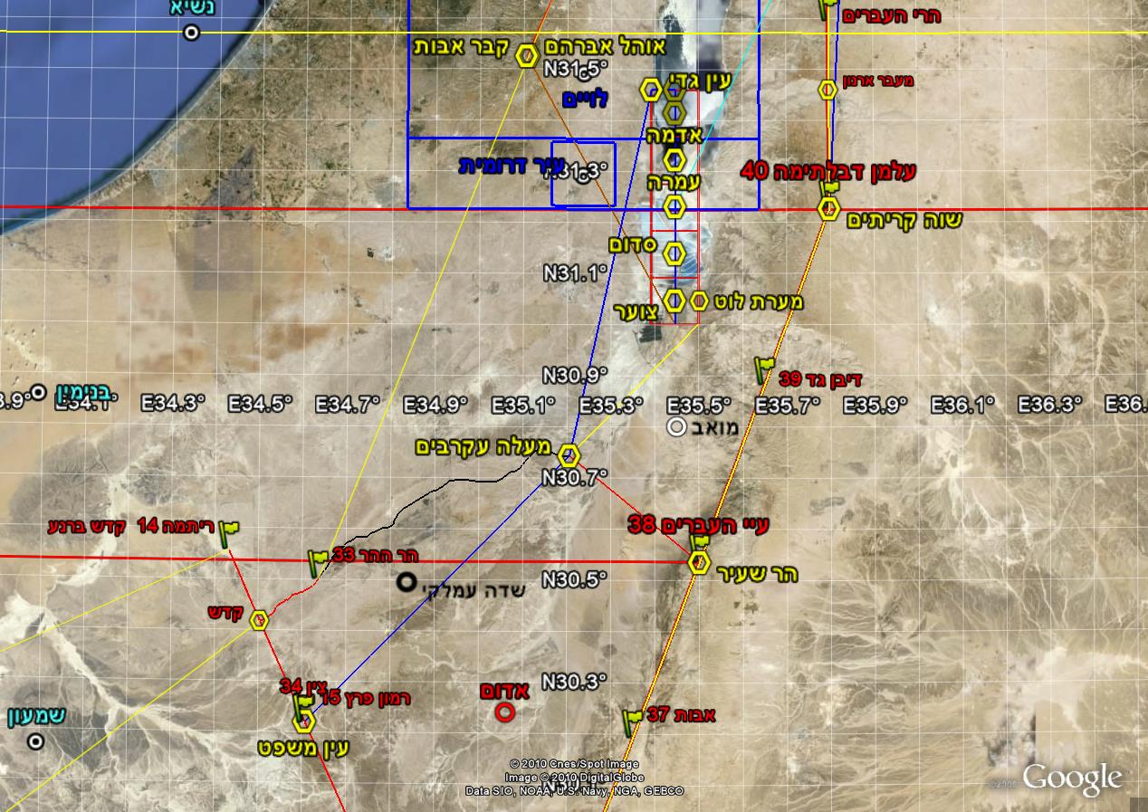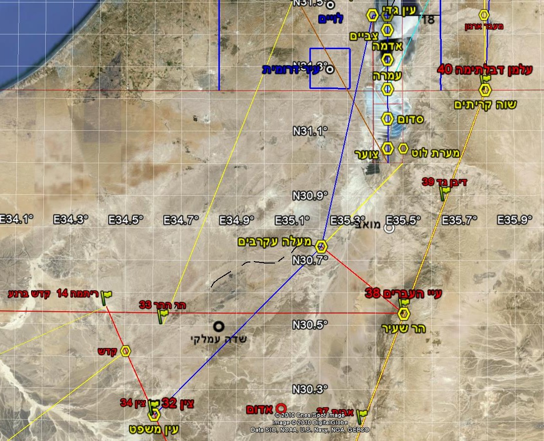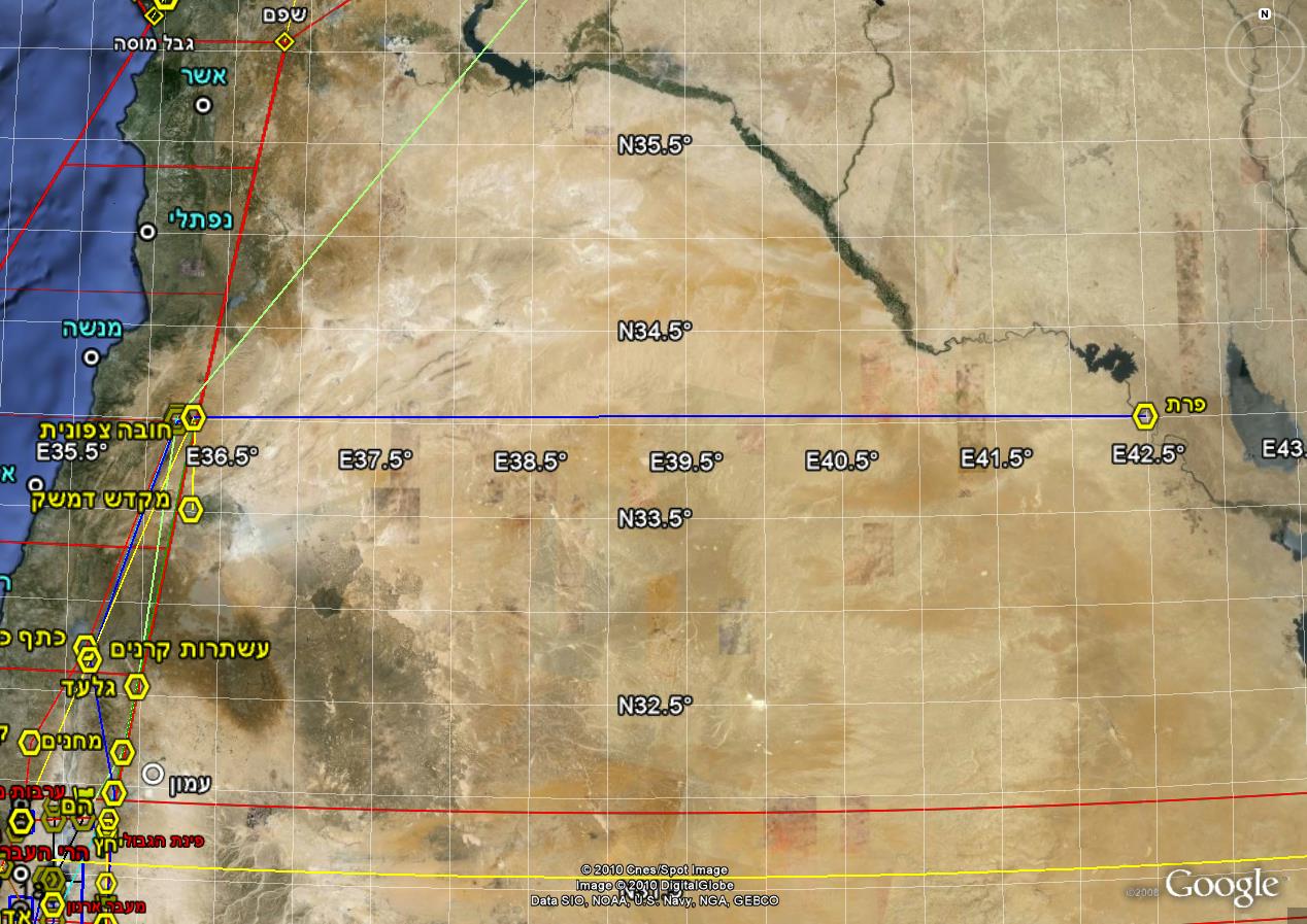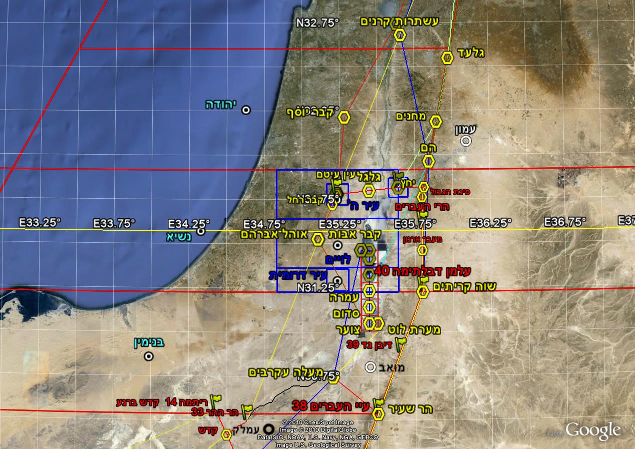 35.7977492/31.7600731 בקו אורך של נקודה 10) ובקו רוחב גבול דרומי של מחנה ישראל בערבות