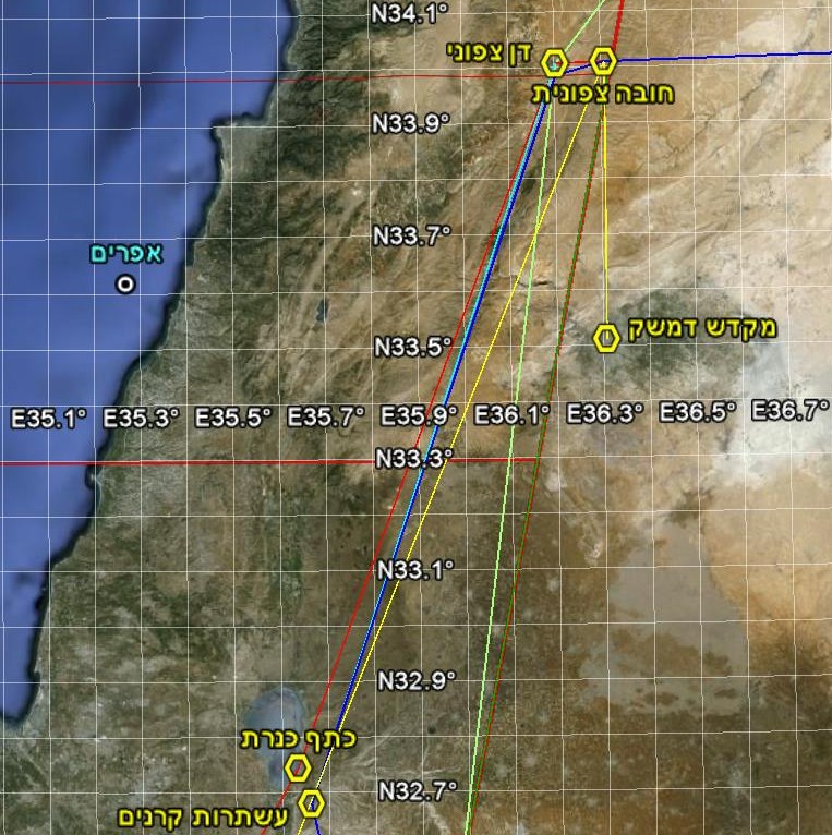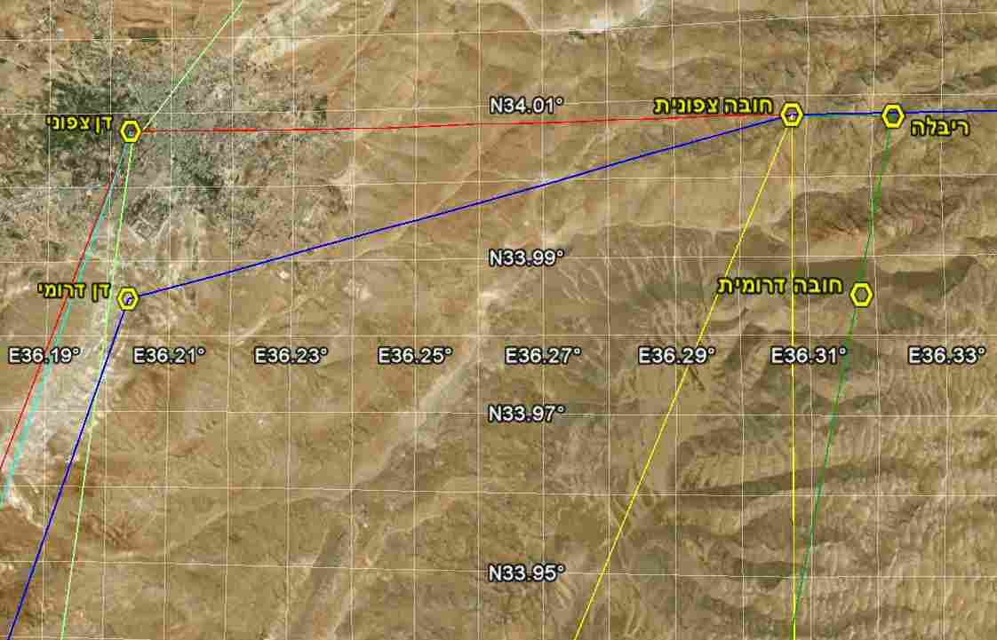 36.3230795/34.0075833, 270 מיל צפונה מ- 3) על קו גיאודטי מ- 11 ל- 9.
