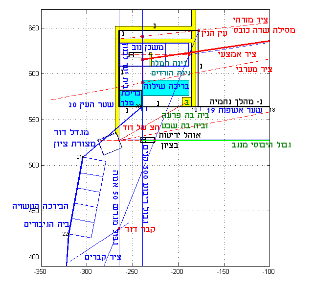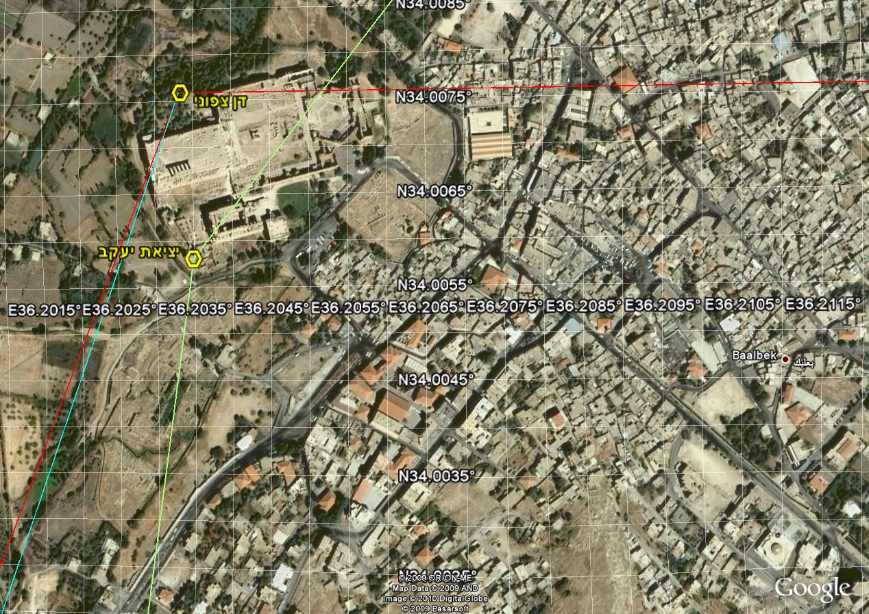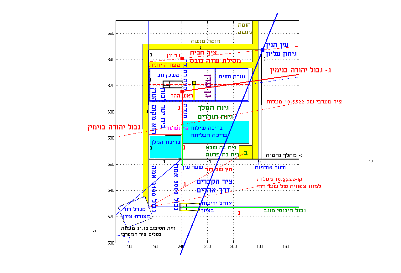 וציר בית מקדש שני אשר עובר דרך נקודה 1 בכיוון 5.971 מעלות. זהו כיוון זריחת השמש