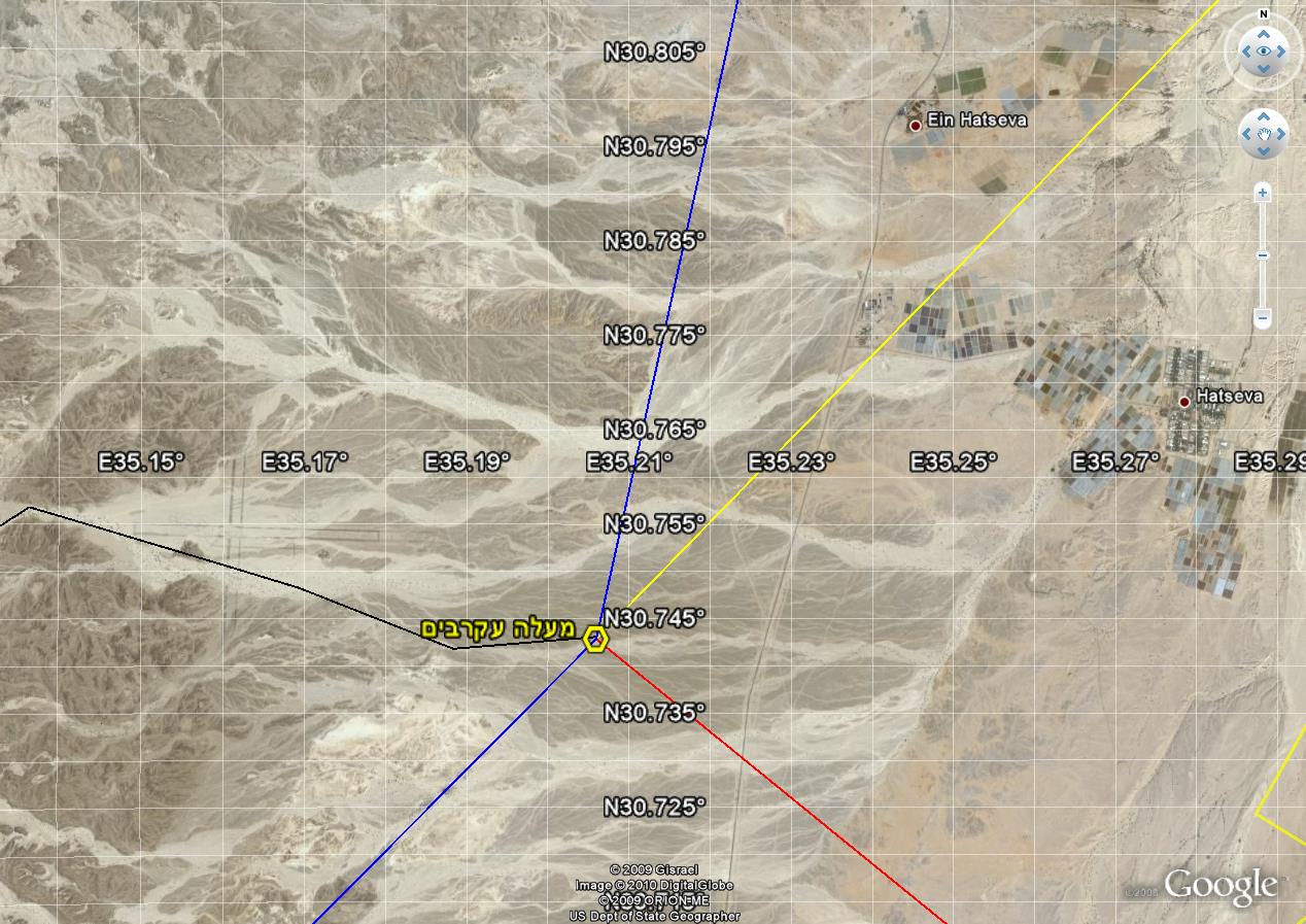 מחצצון תמר. אנו מזהים אותה עם מעלה עקרבים. אזימוט מעין משפט לשם 44.64 מעלות