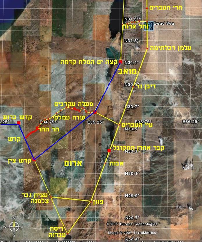 העברים, בדרום ע''י קו מסע צלמנה-פונן (אשר זהה לקטע עציון גבר-אילת),