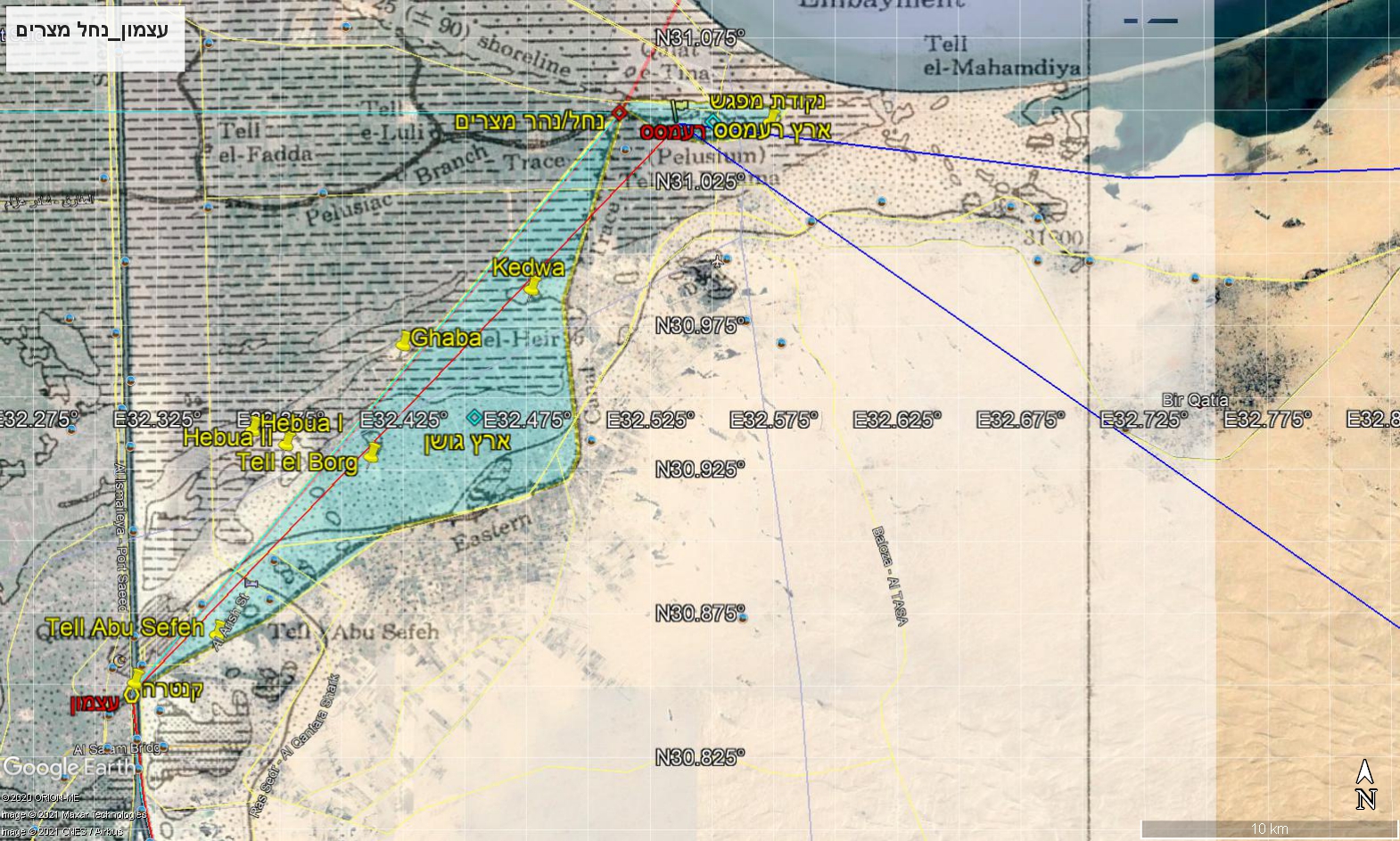 ארץ רעמסס עם תחום המוגבל מדרום ע''י זרוע זאת ומצפון ע''י חוף הים הקדום. שני