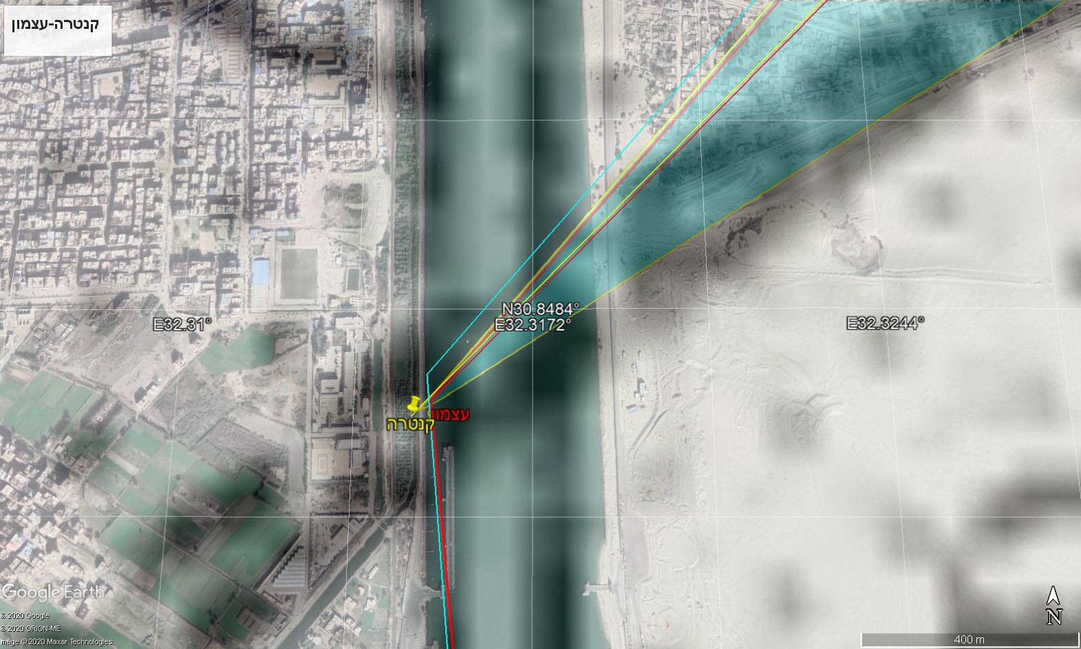 ישראל מגיע בקו ישר מקנטרה אשר זהינו אותה עם עצמנה, לנחל/נהר מצרים ומשם בקו ישר
