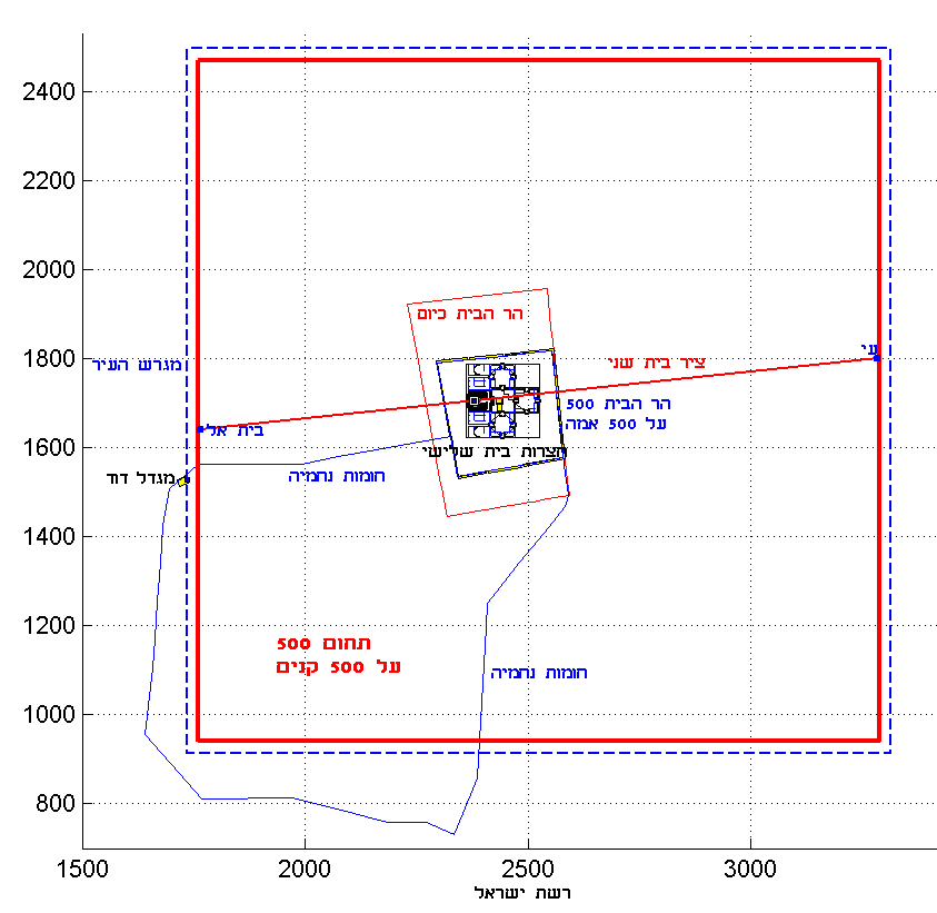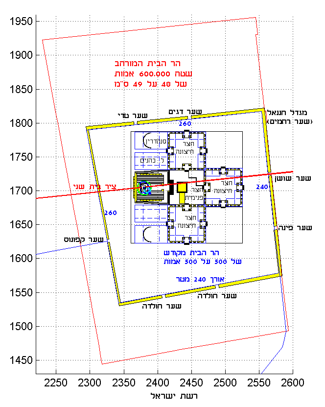 אחד ממרכיבים העיקריים של תשבץ אשר מאשר את אמת הארץ יחד עם האמת האדם של 48 ס''מ ואמת העולם 52 ס''מ, זוהי תכנית של הר הבית המקודש של 500 על 500 אמות, מקום המקדש ויחסם להר הבית המורחב של היום. התכנית מוסברת במאמר על גבולות הר הבית ובמאמר המשך.