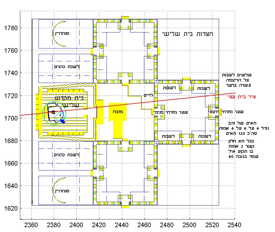 יהיה באמצע של חלק הכהנים. לכן מרחק בין מקדש לגבול דרומי של תרומה יהיה 60 מיל